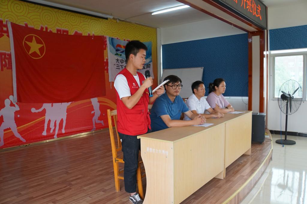 开班仪式由九集镇团委副书记吴珊珊主持,九集镇文化体育服务中心主任张瑞致欢迎词,同时表示将为“希望家园”活动提供后勤保障和鼎力支持。随后,社会实践队队长鲁正韬做表态发言,并表示将发扬不怕困难、不怕吃苦的精神,力求为留守儿童带来更多的知识,用自己的行动让他们度过一个愉快的暑期。最后全体队员进行集体宣誓。