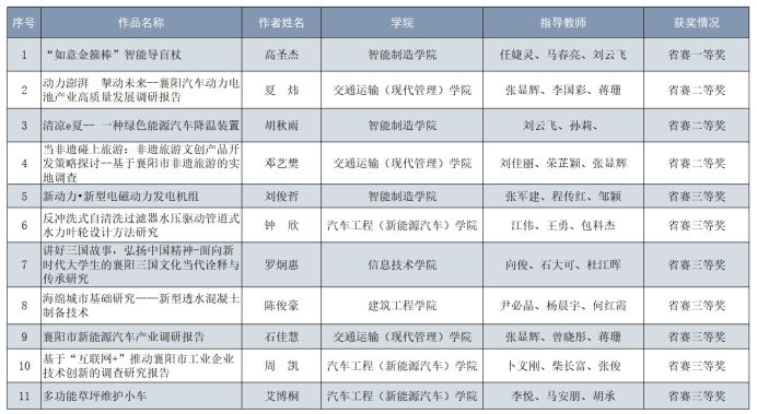 本届“挑战杯”共计109所高校1276件作品参加竞逐,我校共11个项目团队获奖,其中一等奖1项、二等奖3项、三等奖7项。